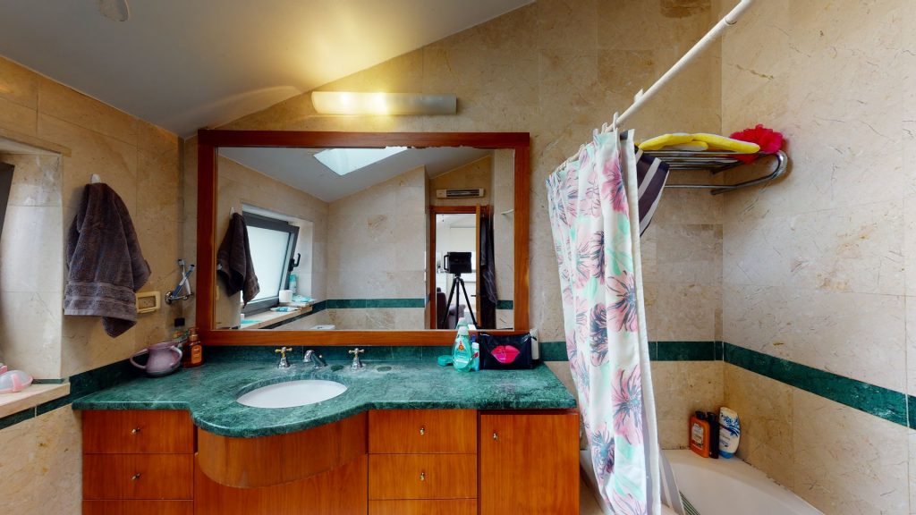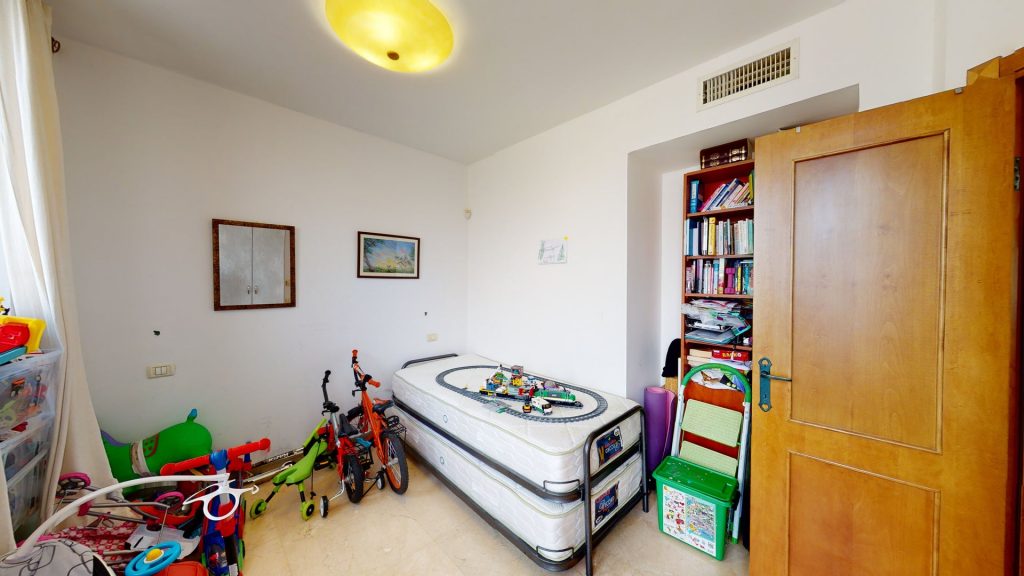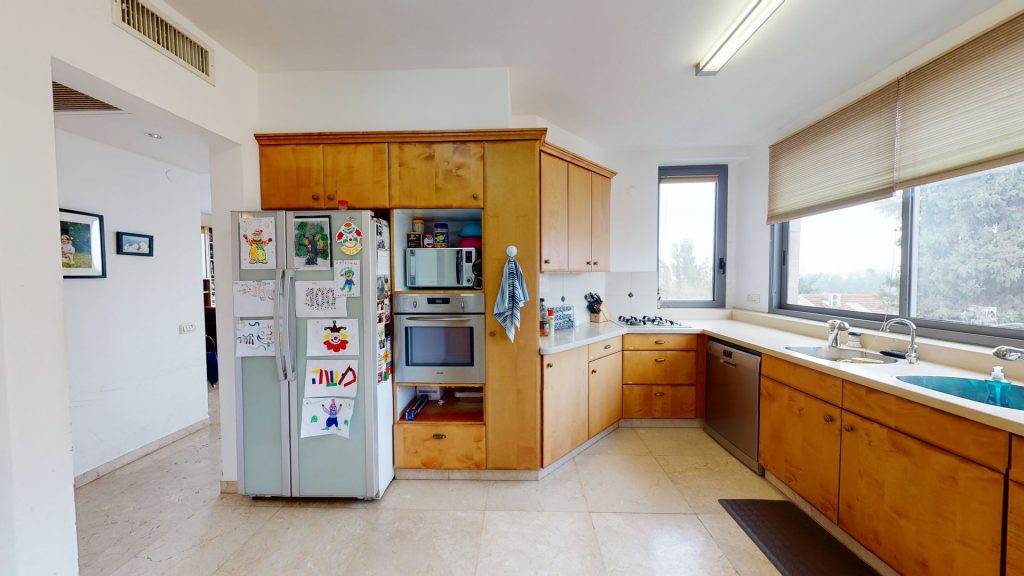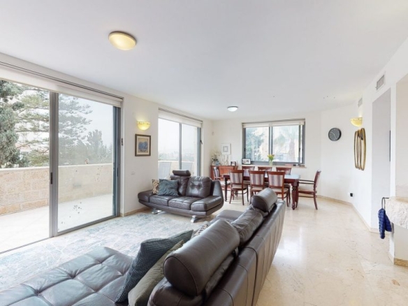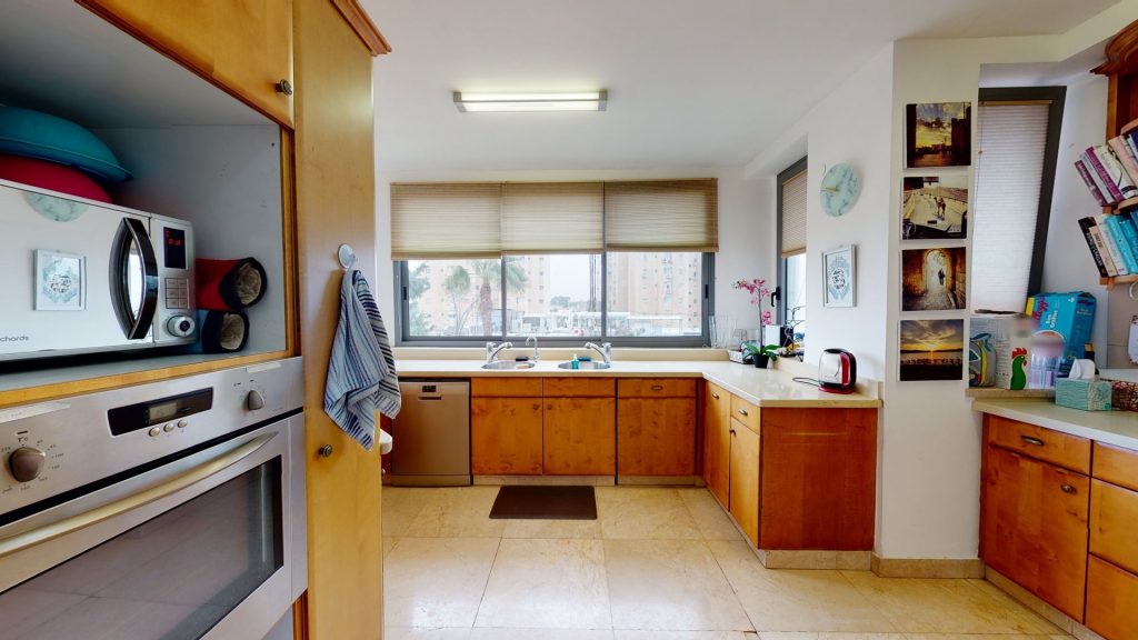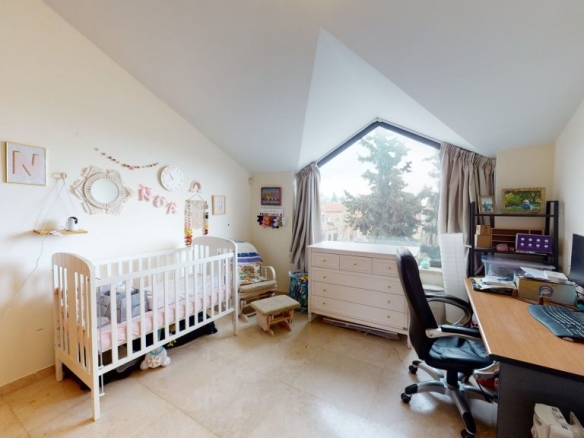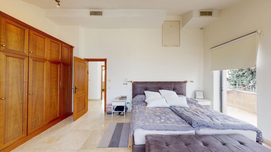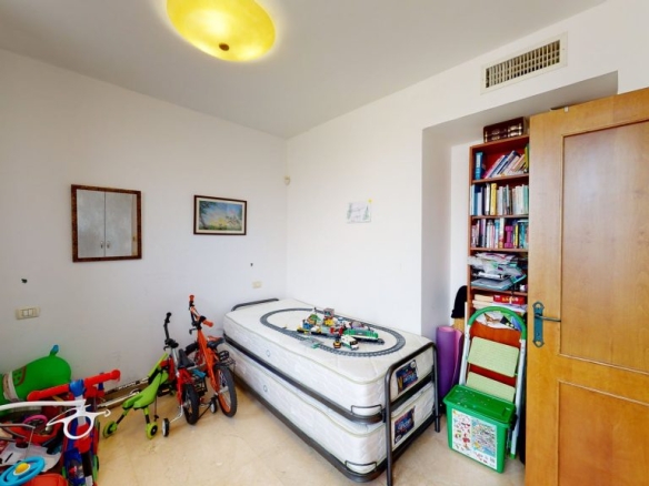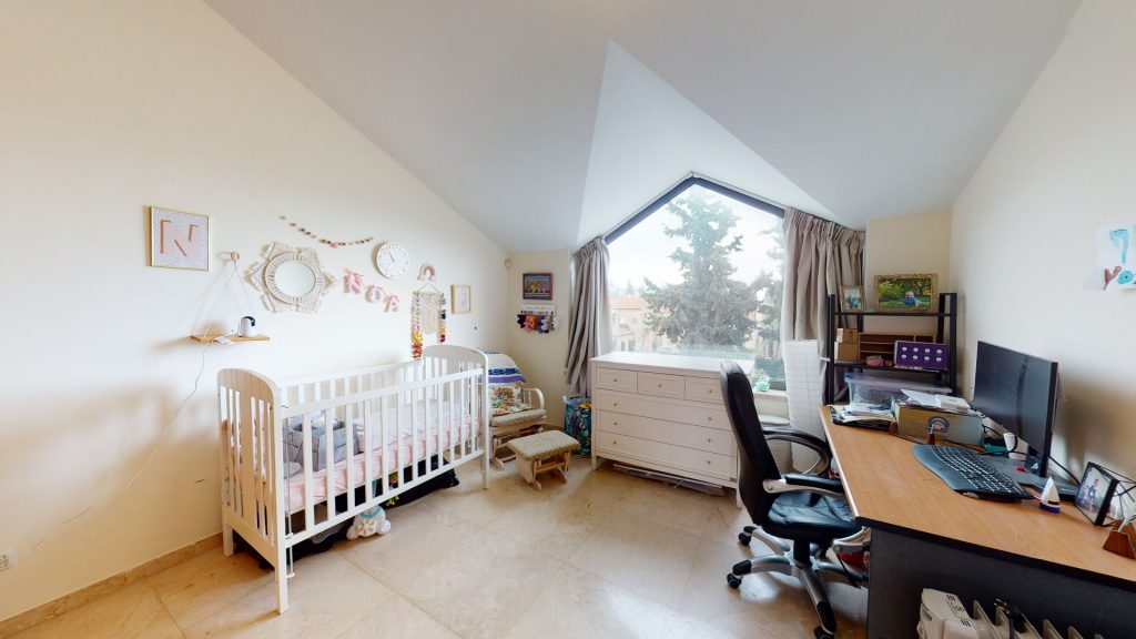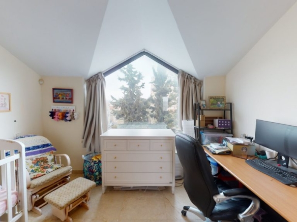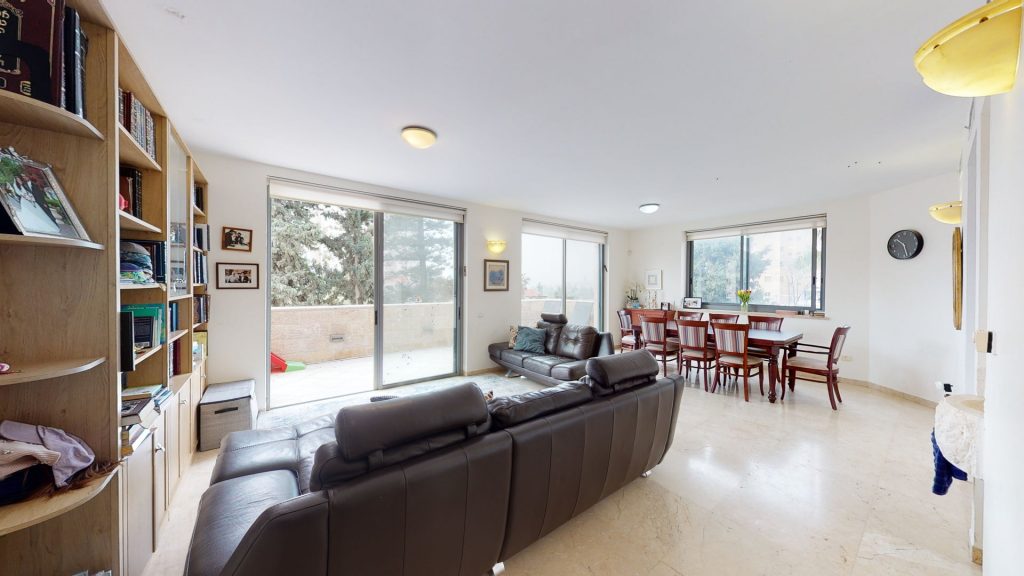 On the entrance level there is a spacious living room with an exit to a large 17 Sqm. sukkah balcony with a panoramic view. Modern kitchen and dinning area. A Bedroom leading to another sukkah balcony, and a half room (Can be a Passover kitchen / storage /office).