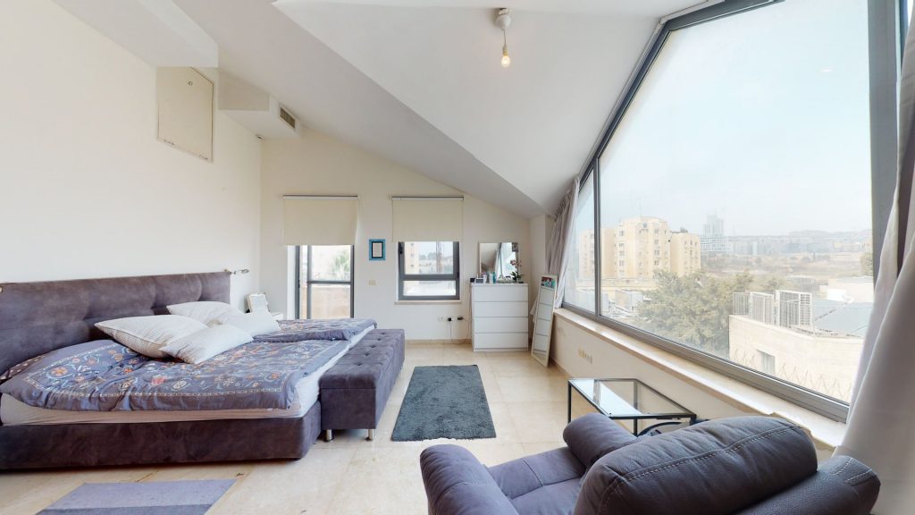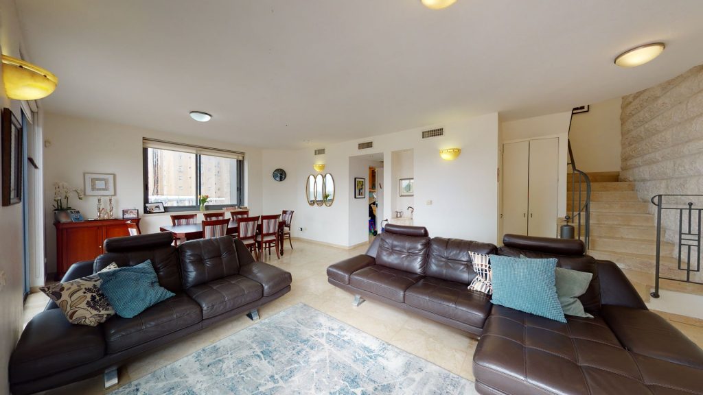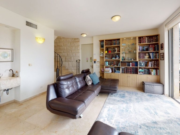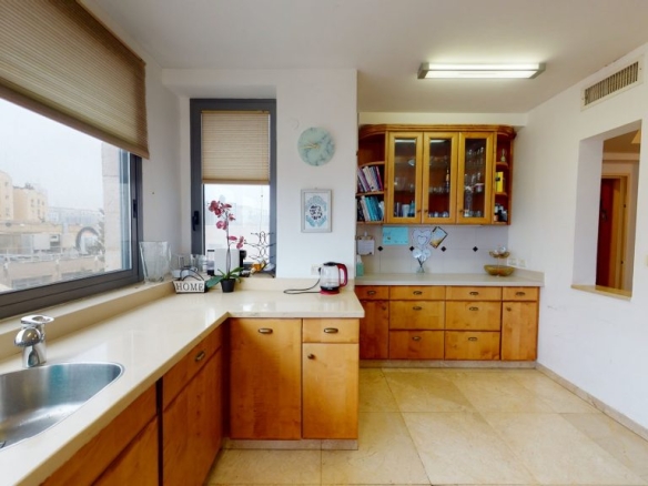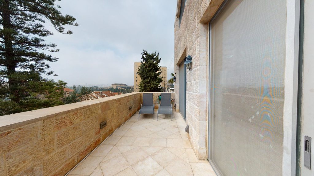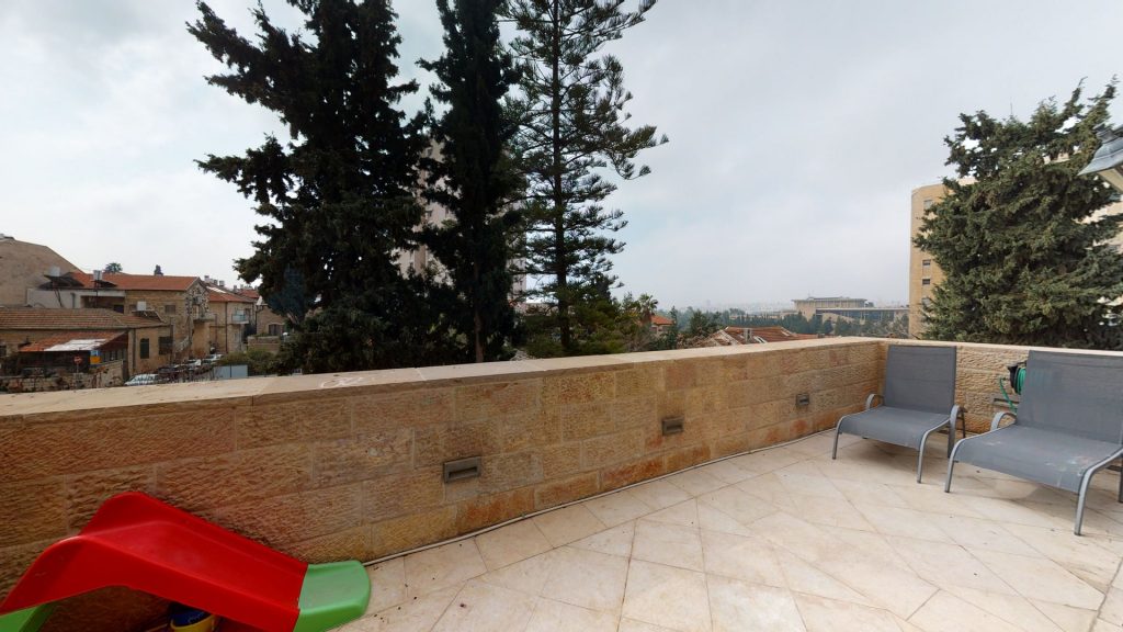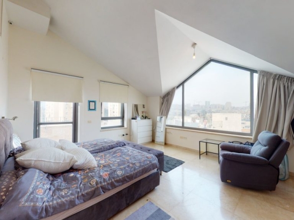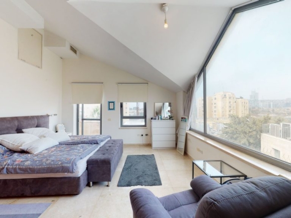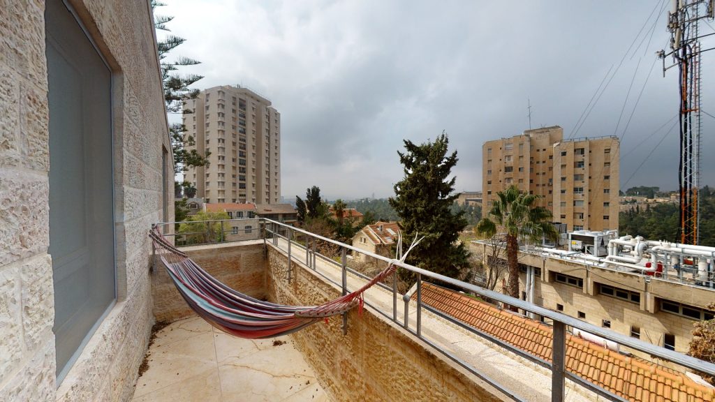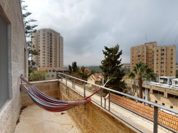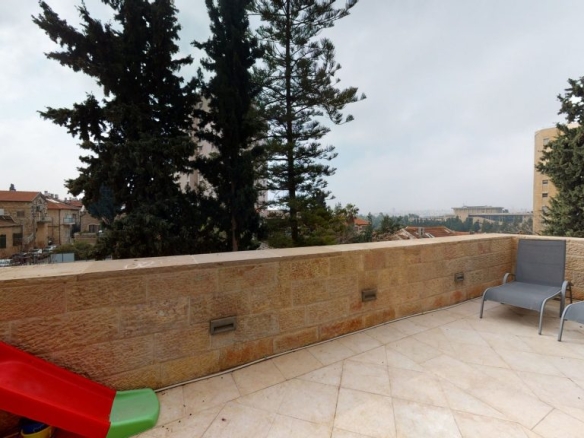 The apartment is located in the heart of the central Shaarei Chesed neighborhood, on Israelis St. a quiet street with a dead-end. This penthouse is on the 3rd & 4th floors of a small new building, with only 4 apartments. Its 160 sqm + 30 sqm sukkah balconies.