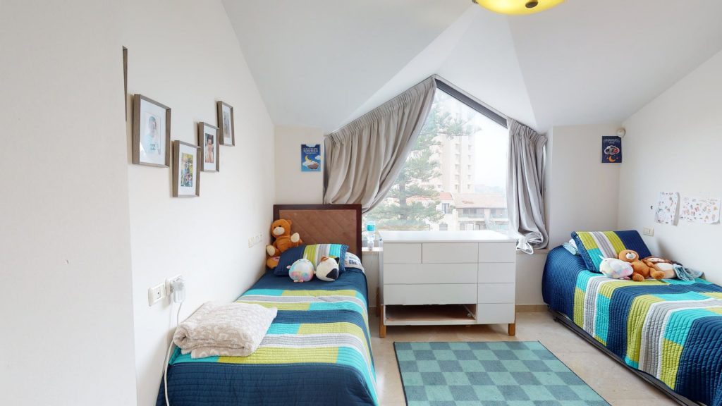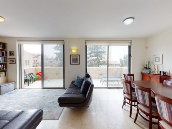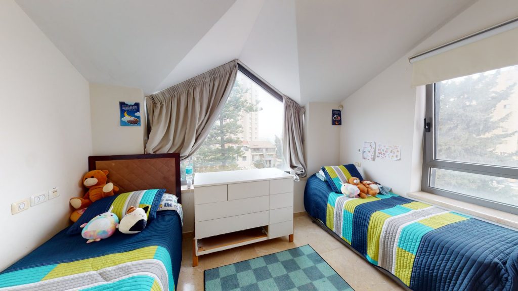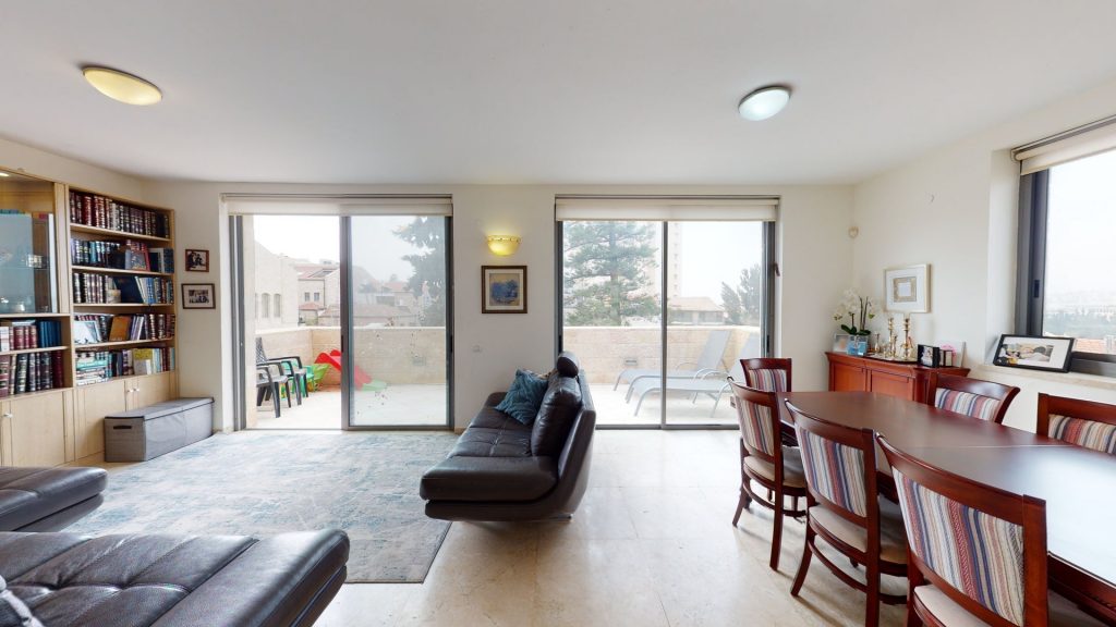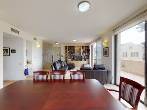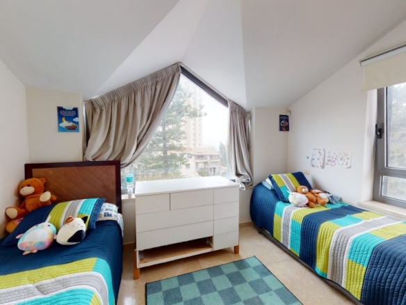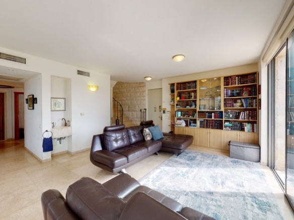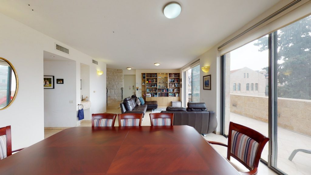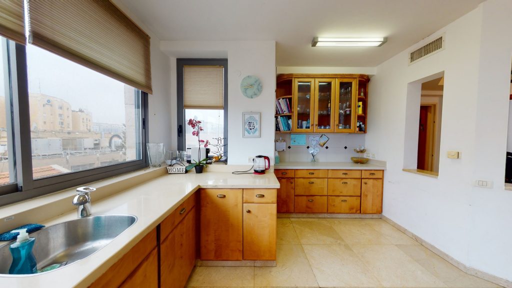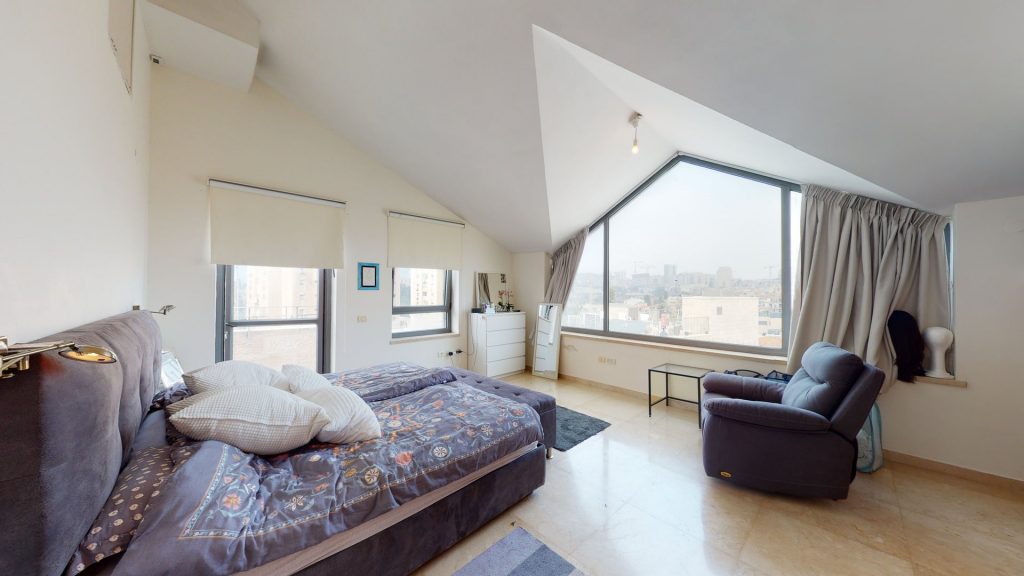 The apartment is located in the heart of the central Shaarei Chesed neighborhood, on Israelis St. a quiet street with a dead-end. This penthouse is on the 3rd & 4th floors of a small new building, with only 4 apartments. Its 160 sqm + 30 sqm sukkah balconies.