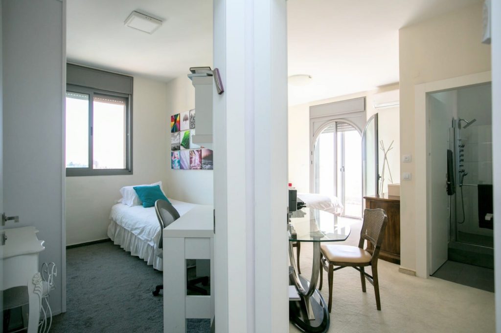 The apartment is full of light, quiet, and privacy. There are built-in closets in all the rooms, instant hot water (electricity and solar water heater), air conditioner with separate units in all the rooms, nets in the windows, gas point on the balcony, and fiber optic.