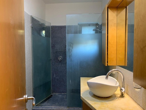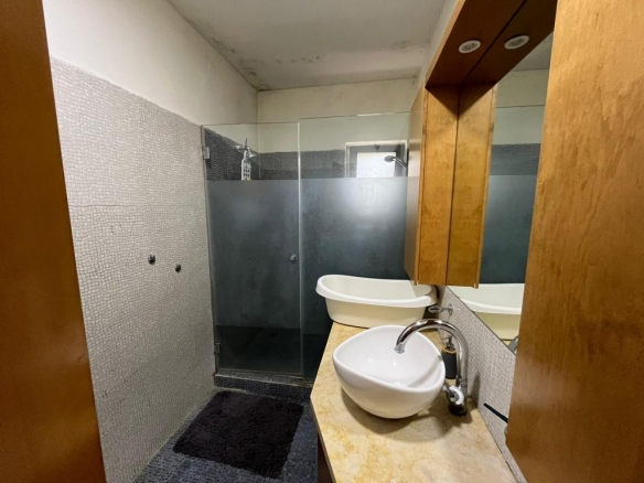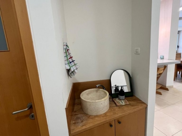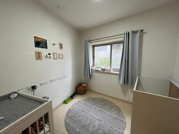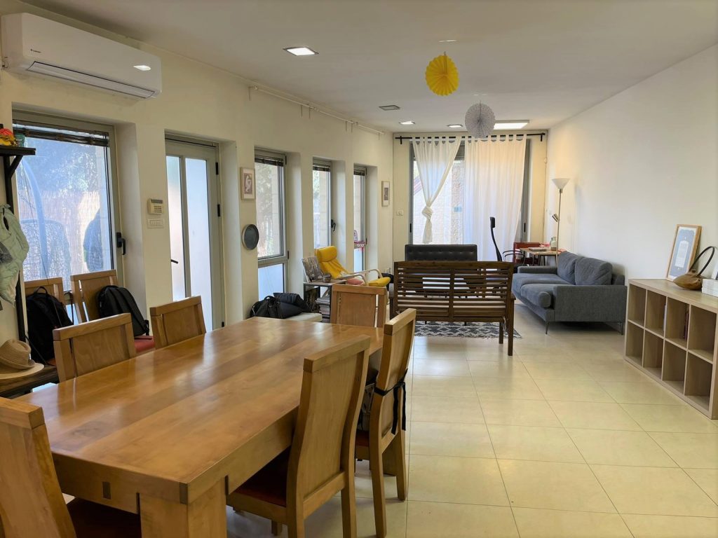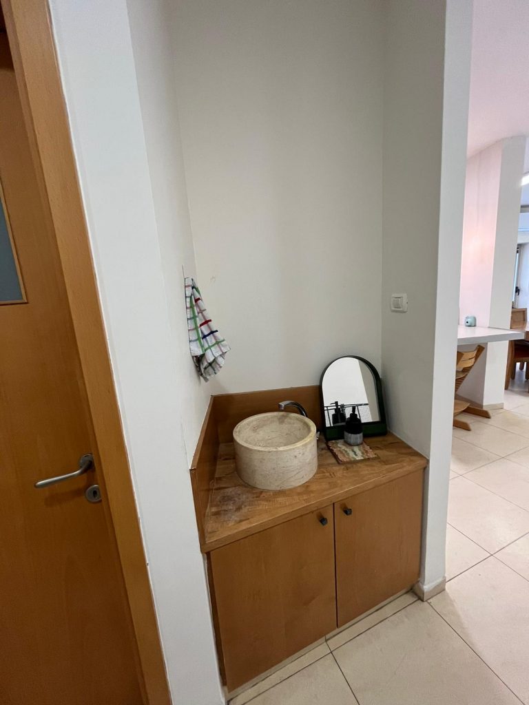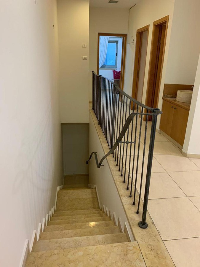 This apartment is renovated at a high standard and consists of approx. 100 SQM. Walk-in at the entrance level with a spacious living room + dining area, the kitchen, 2 bedrooms – (only shower is the one in the en-suit) and an additional guest bathroom. On the lower level there is a 3rd bedroom that is a MAMAD (safe room).