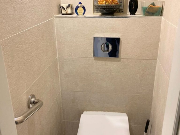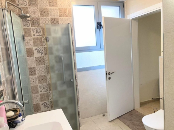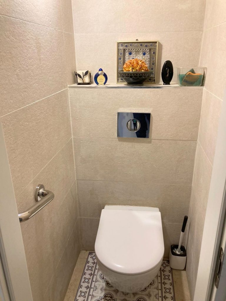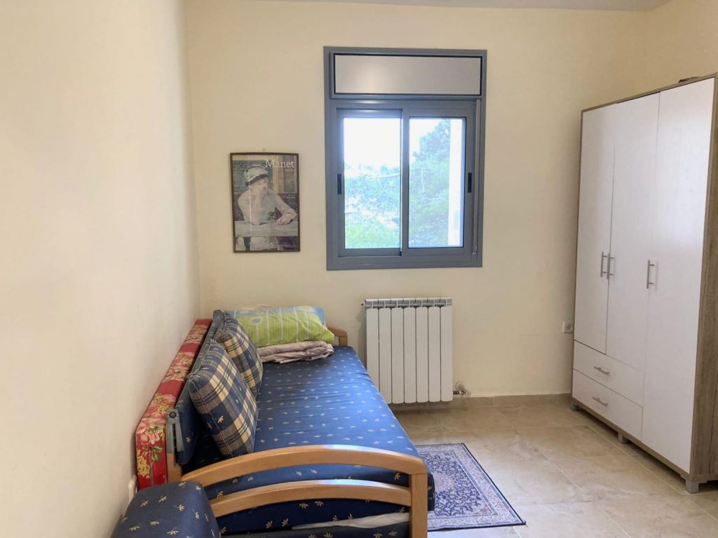 The apartment is on the 4th floor with a Sabbat elevator. There are 2 Bedroom, 1.5 bathroom, and a spacious living room facing a green view. The apartment is furnished, and has an equipped kitchen, air conditioning in the living room and bedrooms, and heating throughout.