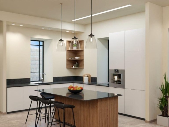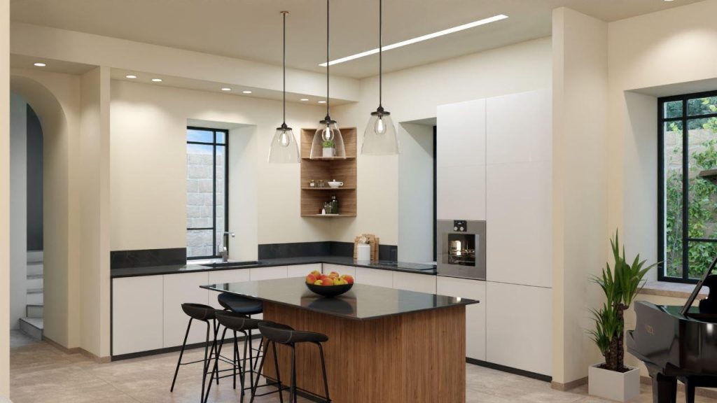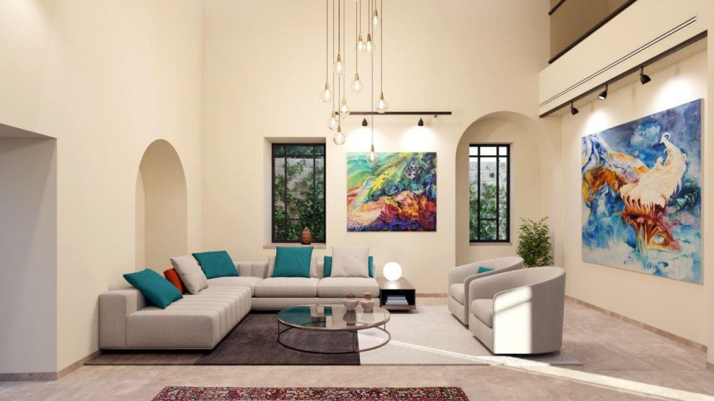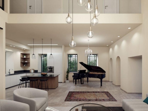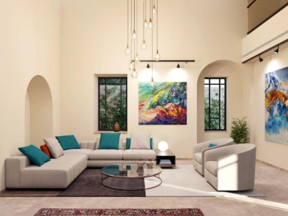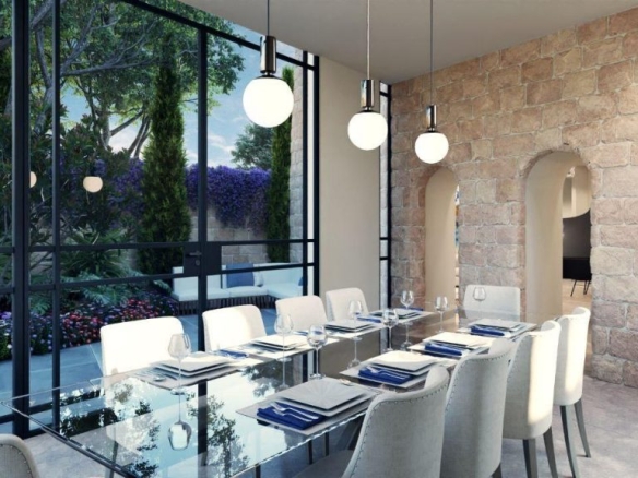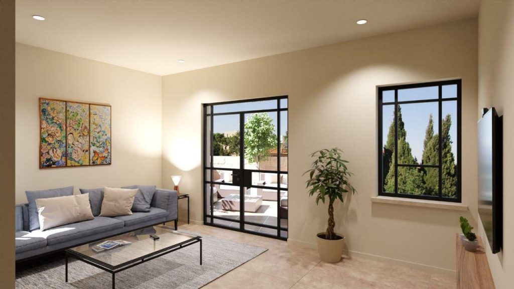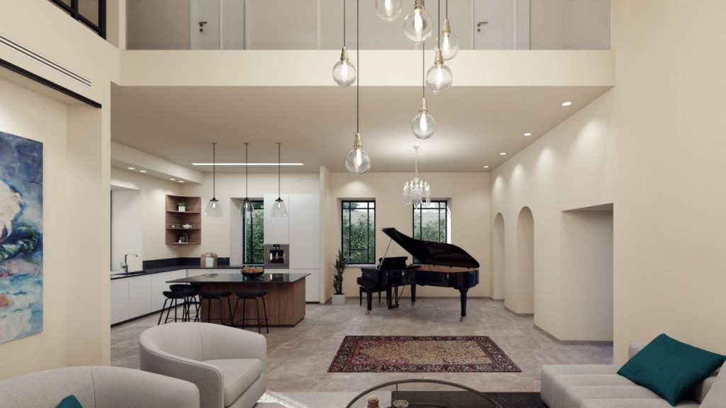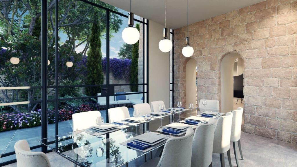 Originally a two-story home built in the 1880s, two extra floors and a red-tiled slatted roof has been added, benefitting from all four air-flow directions. According to the strict regulations of the Jerusalem Municipality’s Department of Conservation, the ground and lower floors have been expertly restored and renovated, whilst maintaining the unique character of the original home. The two newly-added upper floors reflect a modern style that beautifully blends as complimentary additions to the style of the two lower floors.