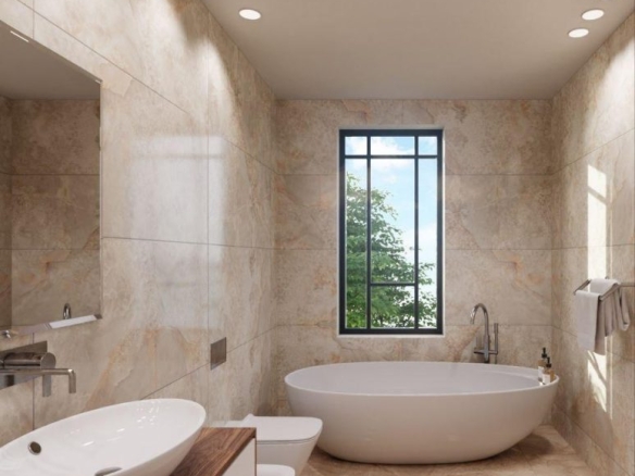 First Floor: A landing that overlooks the large living area of the ground floor. One master bedroom and ensuite bathroom, with an adjoining balcony. Two further bedrooms, each with a private balcony, and a bathroom servicing both bedrooms.
