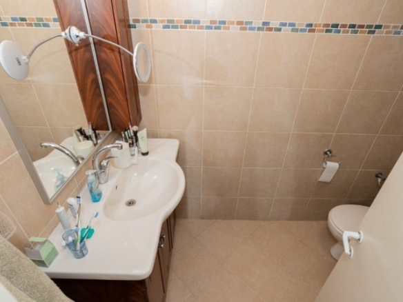 On the entrance floor, there is a spacious living room, dining area, kitchen with an exit to a covered balcony, and a guest bathroom.