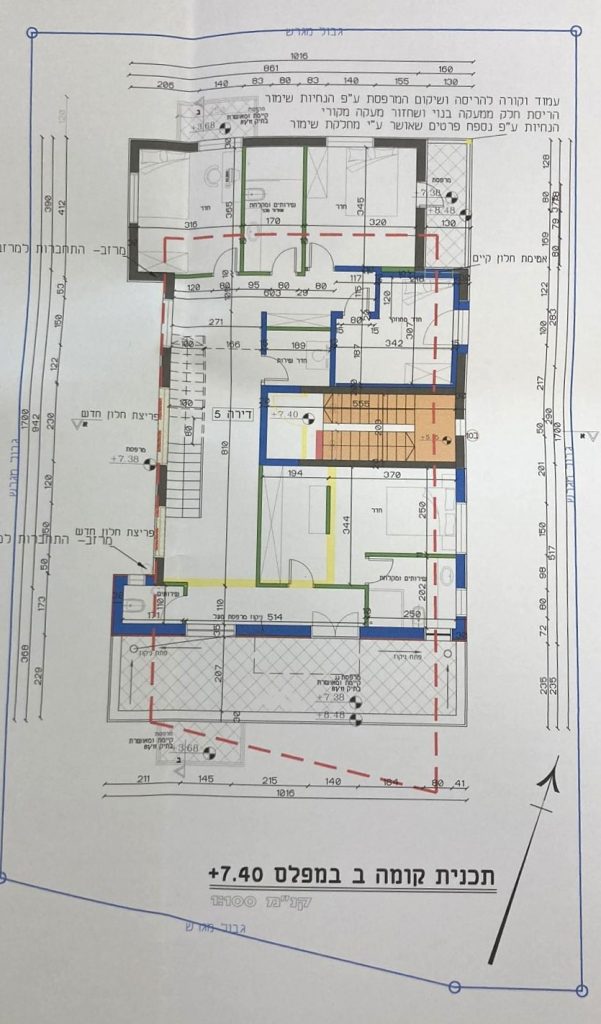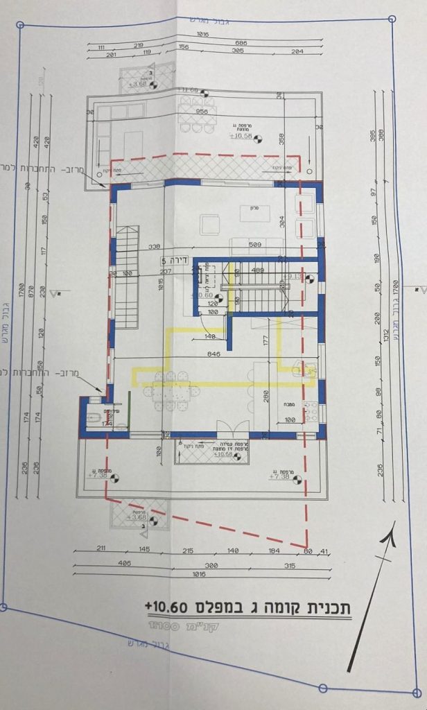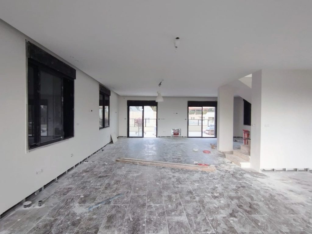 The entrance level has a kitchen, living room, dining area, and potentially a master bedroom. 2 sukkah balconies with beautiful views – 50 sqm.