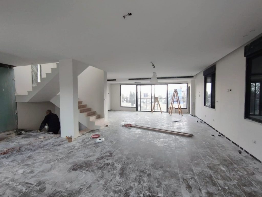 This duplex apartment is on the 3rd & 4th floor of a small Jerusalem-stone building. It’s 250 sqm + 70 sqm balconies + private rooftop with panoramic views of the city.