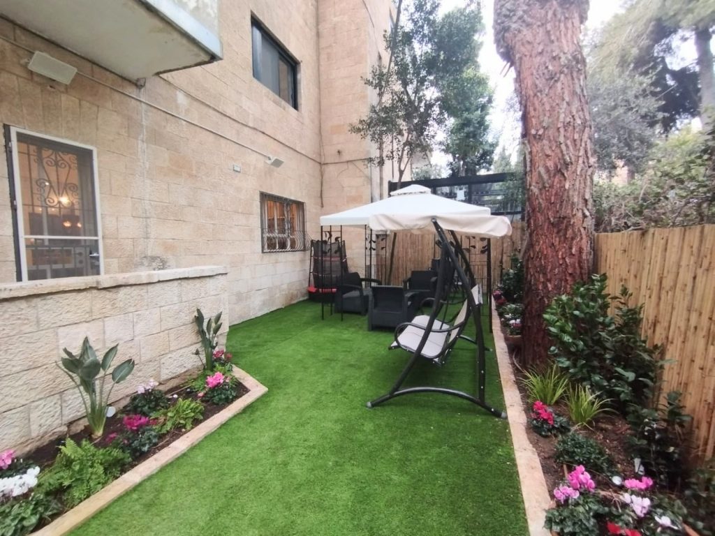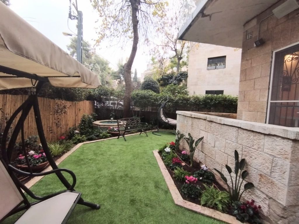 A lovely garden apartment on Radak Street in the heart of the Rehavia neighborhood. This is a 3 bedroom apartment (with a spacious master suite), 2.5 bathrooms, 120 sqm + 14 sqm balcony + Beautiful private garden of 140 sqm, a spacious kitchen open to a large living room and a dining area.