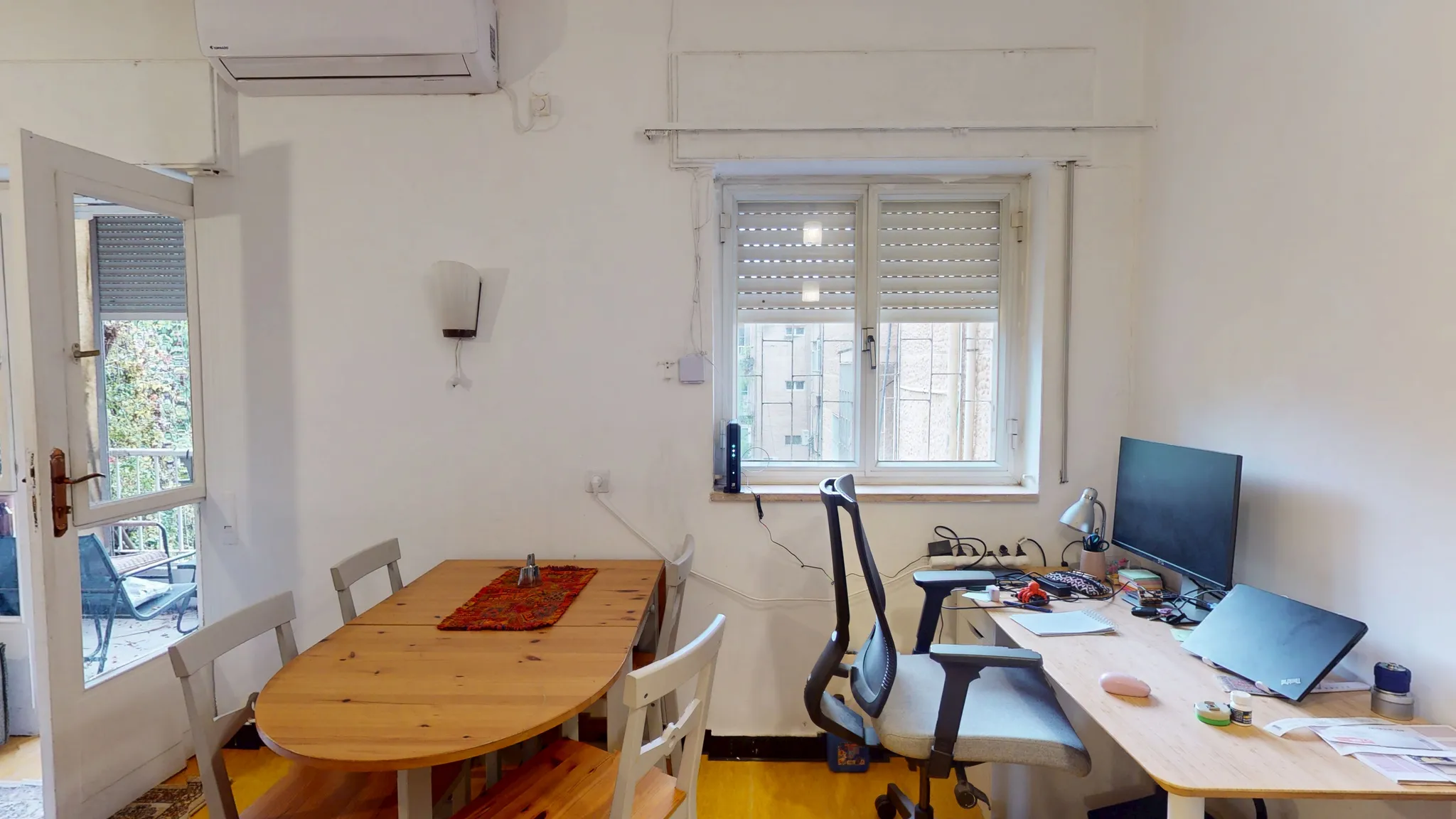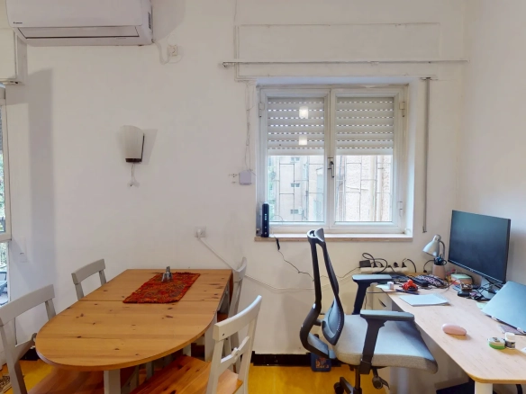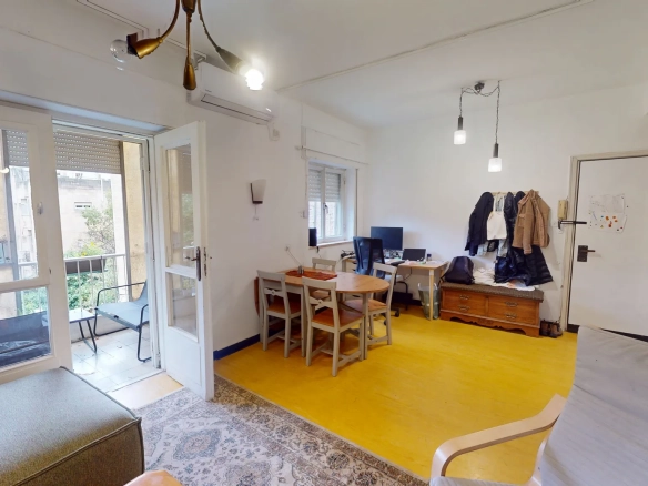 In the heart of prestigious Talbiya, in a quiet and green complex, this well-kept 1-bedroom apartment on the first floor spans 57 sqm plus 4 sqm south-facing balcony (45 sqm registered in Tabu), and offers excellent future value as part of an advanced urban-renewal project.