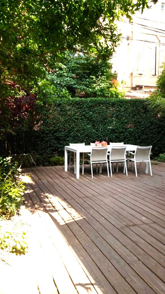 On Mordechai Hayehudi St. in Baka, a beautiful 152 sqm apartment with 200+ sqm wrap-around garden with a wood deck.