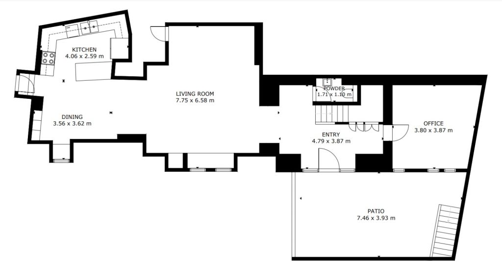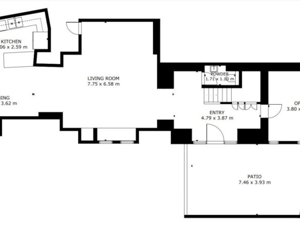 The entrance floor includes a large and spacious living room, dining area, renovated kitchen, bedroom, and guest toilet.