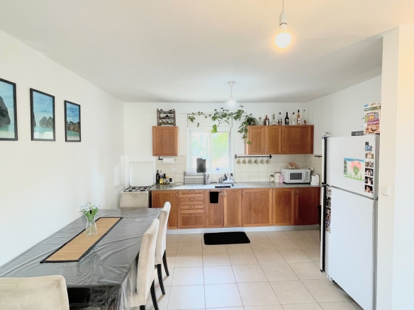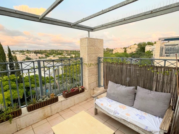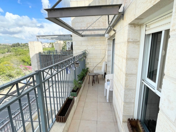 The apartment measures 96 sqm (according to municipal records) and 92 sqm (registered in Tabu). It features 3 bedrooms, including a secure room (Mamad) and a master bedroom with a walk-in closet. There are 2 full bathrooms and two sukkah balconies totaling 15 sqm, with beautiful open views.