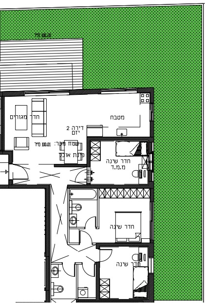 This is an 100 SQM apartment with an 100 SQM private garden. The interior layout of the apartment is very flexible in terms of design allowing the buyer to design the interior that most fits their needs. Offering a 3 bedrooms and 2 bathrooms layout. Includes private underground parking.