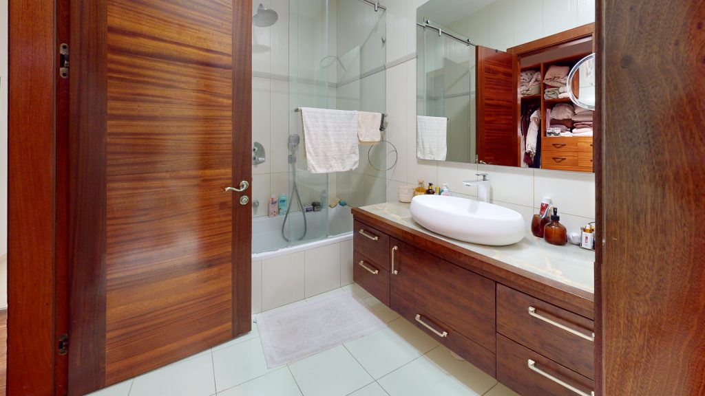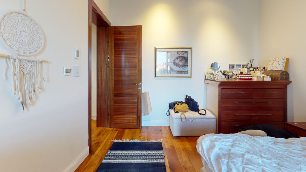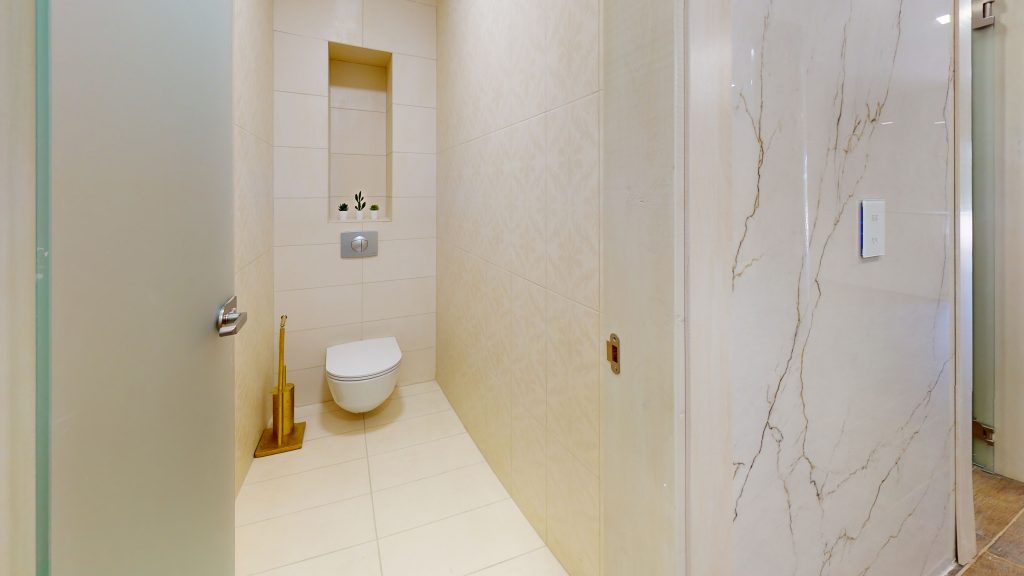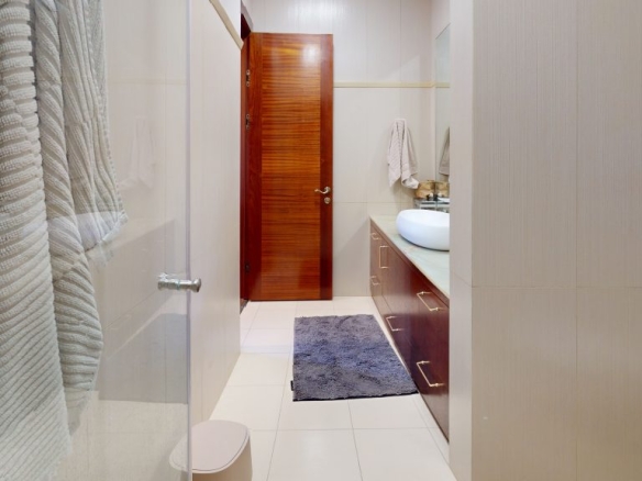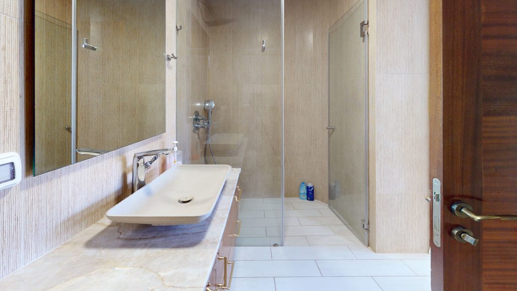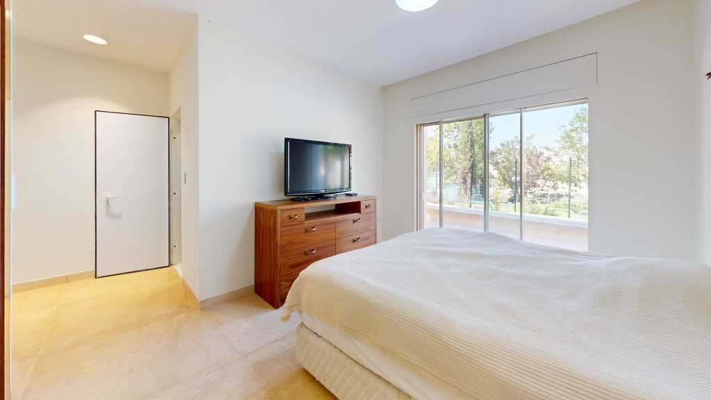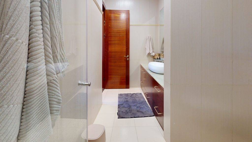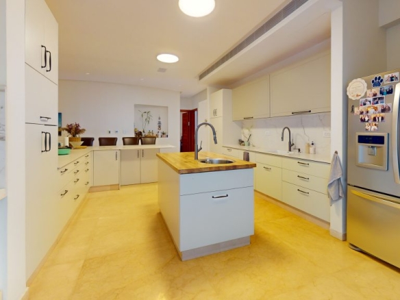 On the “Main Level” (about 200 SQM) is a living room, with an exit to a balcony (66 SQM) facing a serene view. A dining room, and a kitchen with access to an additional balcony (12 SQM). In addition, there are three master bedrooms, a bathroom, and a powder room.