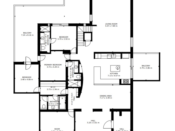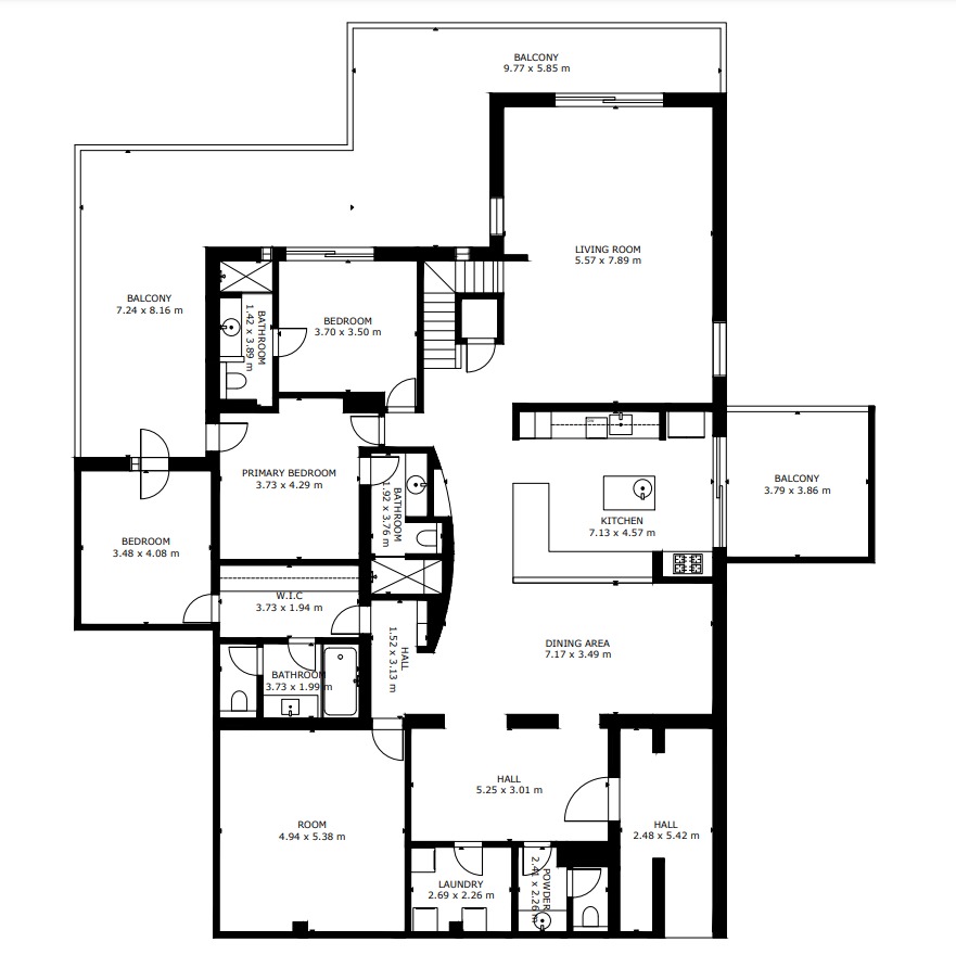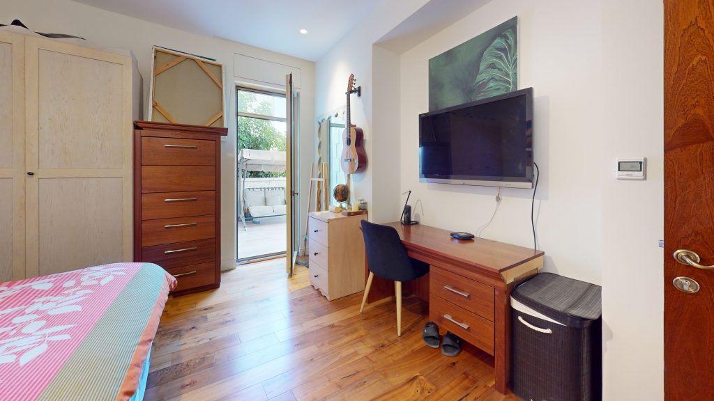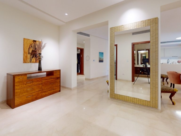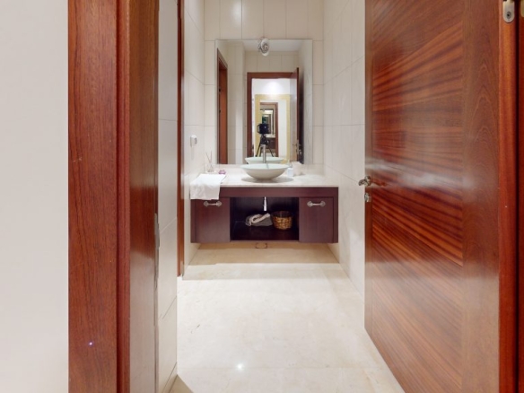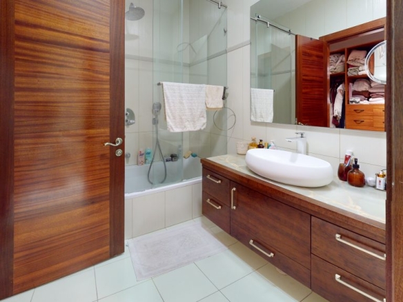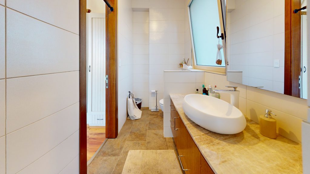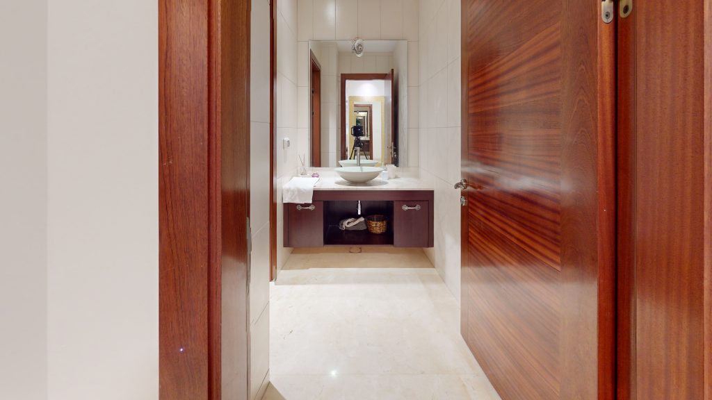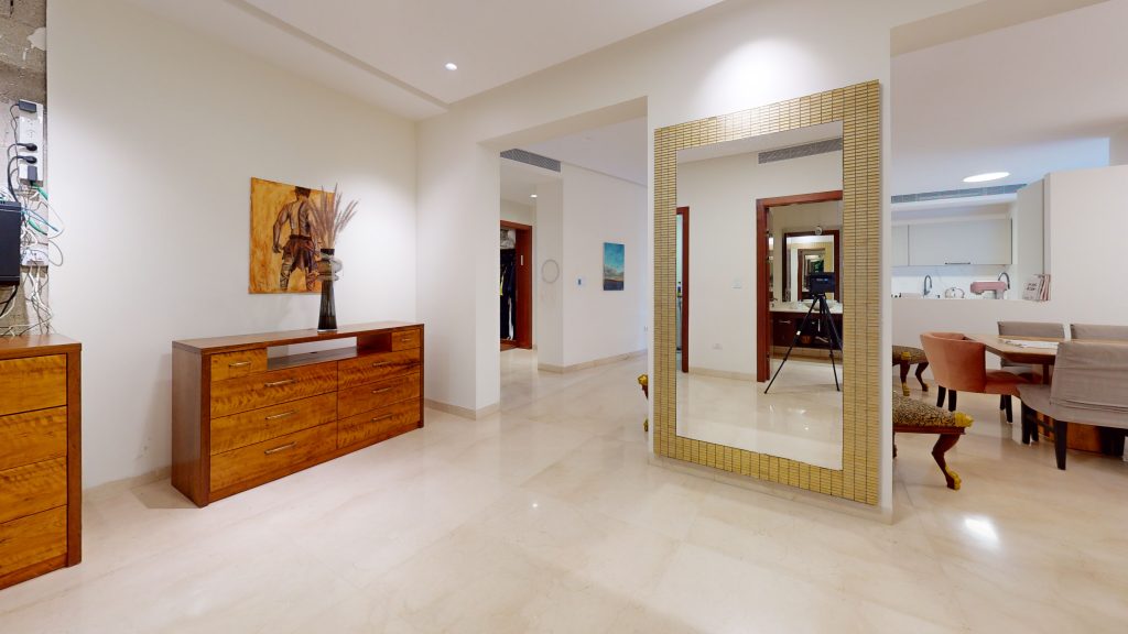 On the “Main Level” (about 200 SQM) is a living room, with an exit to a balcony (66 SQM) facing a serene view. A dining room, and a kitchen with access to an additional balcony (12 SQM). In addition, there are three master bedrooms, a bathroom, and a powder room.