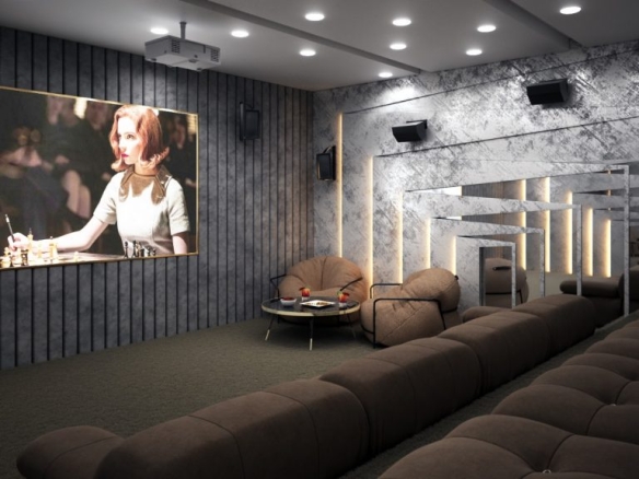 Some of the conveniences in the house are a soundproof home theatre, a private elevator, underfloor heating, Mitsubishi VRF air conditioning, extra parking for guests, a locker room, and a shower with massaging jets near the pool.