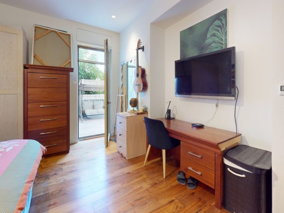 On this level is a guest unit, which features a living room and a master bedroom with a walk-in closet and full bathroom.