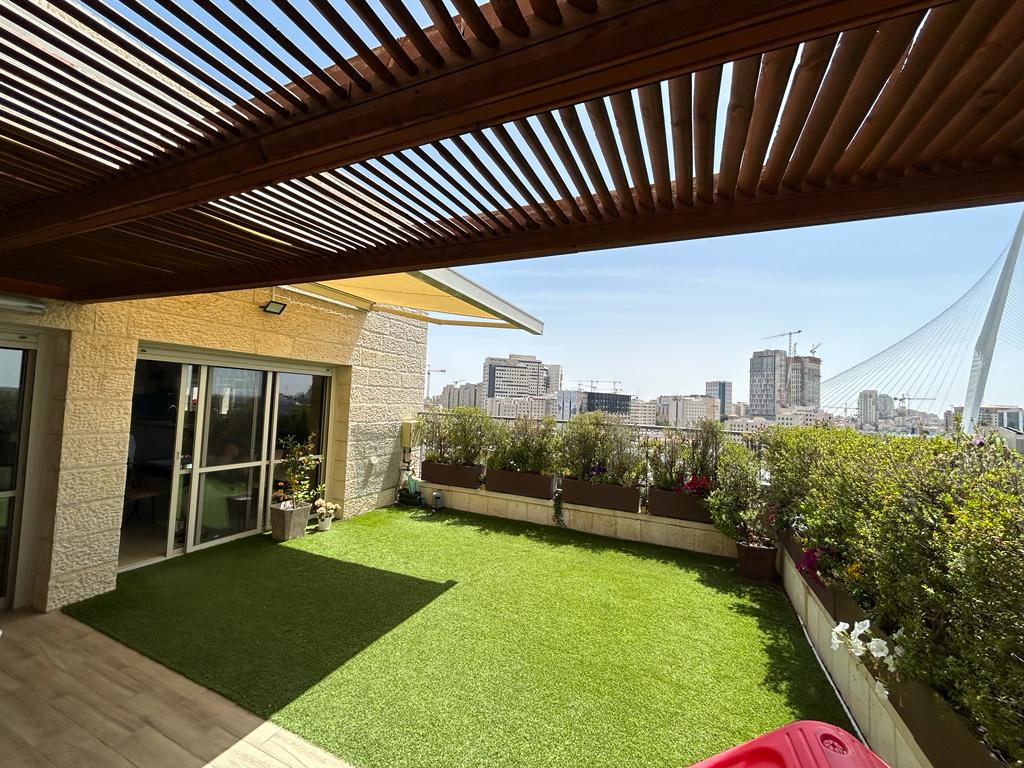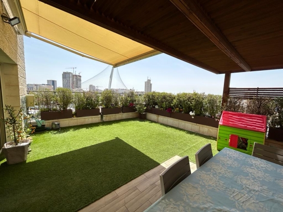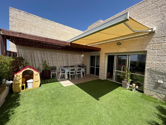 This is a 4 bedroom apartment, 3.5 bathrooms, laundry room, 143 SQM + 39 SQM sukkah balcony + 8.5 SQM covered balcony.