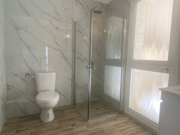 In a terraced building – walk down/up 2 floors without an elevator. It’s a beautiful 119 SQM apartment, with 3 bedrooms and 2 full bathrooms.
