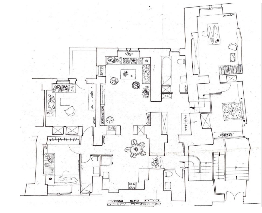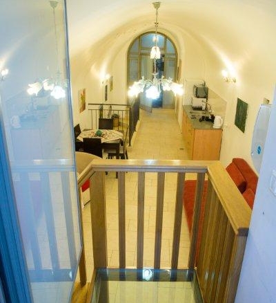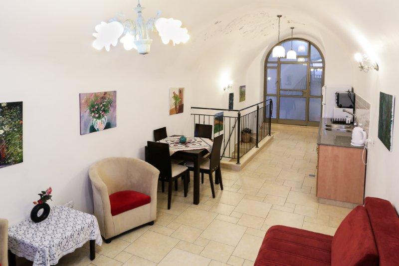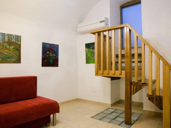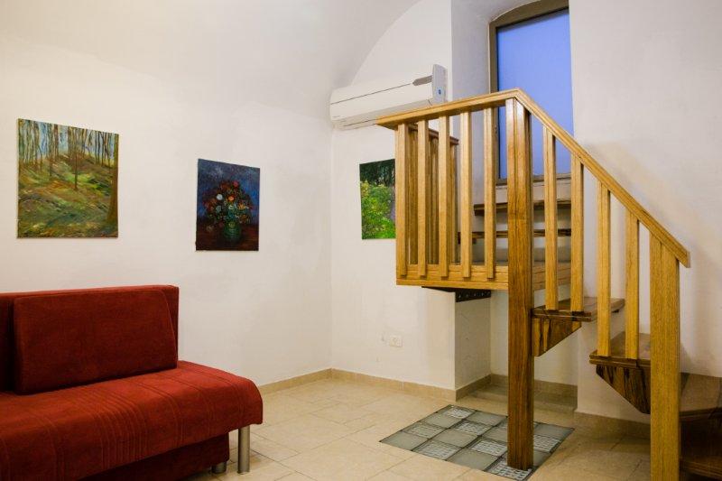 Upper floor: One large space with a living room + kitchenette + exit to the balcony with a view of Temple Mount.
