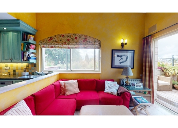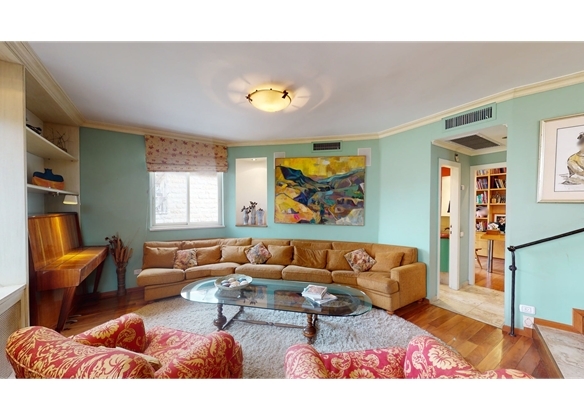There is an open-space living room and kitchen, 3.5 bedrooms on the second + third levels, including a master bedroom with an en-suite bathroom, 3 full bathrooms and a beautiful Sukkah balcony (18 sqm).