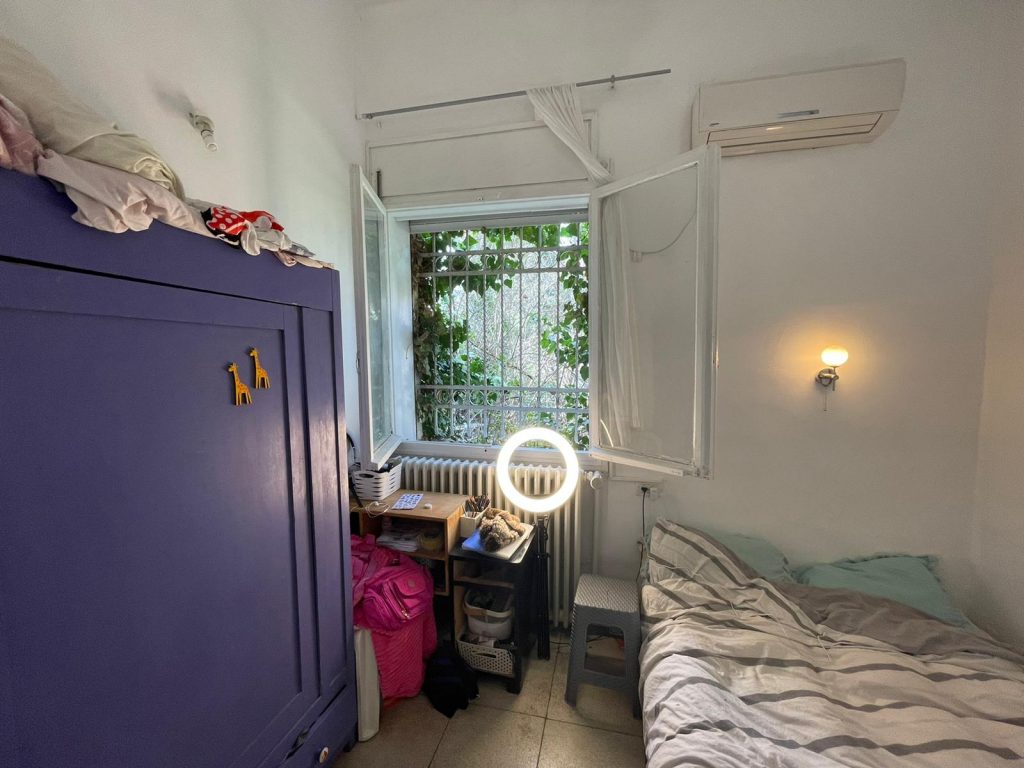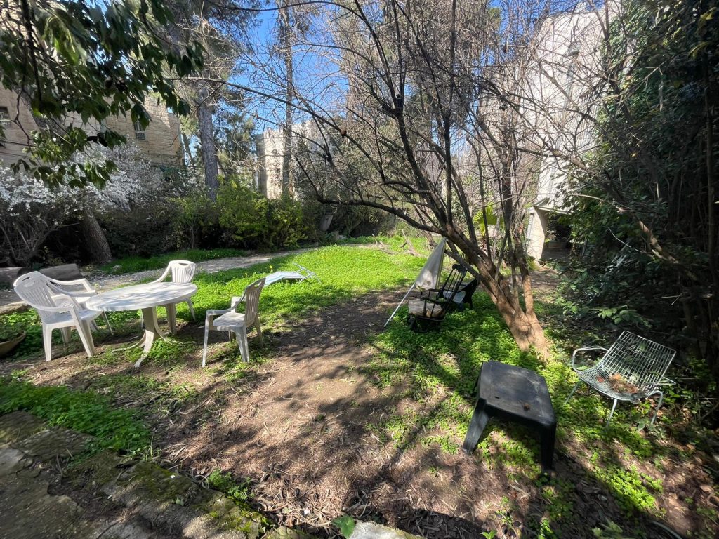 Studio apartment in Arnona on Kore Hadorot Street, 40 sqm with a private entrance, large & rear garden, very quiet. High ceilings with lots of character.